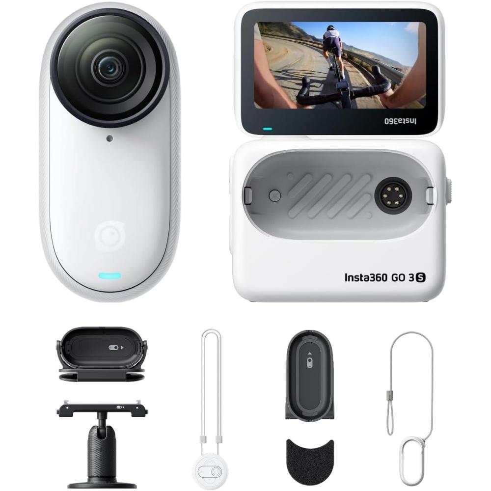 Insta360 GO 3S Cycling POV Bundle – 128 GB White 4K Tiny Portable Vlogging Camera, Hands-Free POVs, Mount Anywhere, Stabilization, 140 Min Battery Life, 10m Waterproof, Pet POV, White